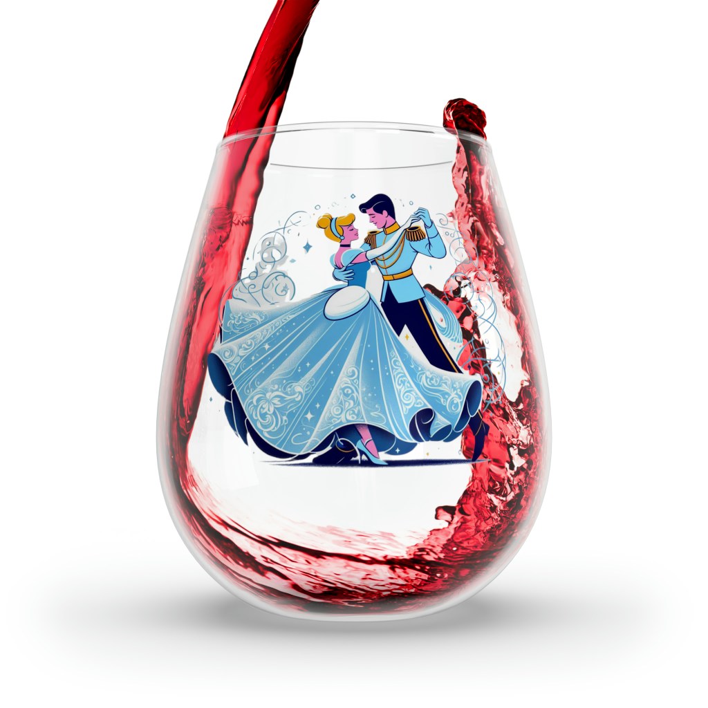 Cinderella and Charming Prince Dancing Stemless Wine Glass