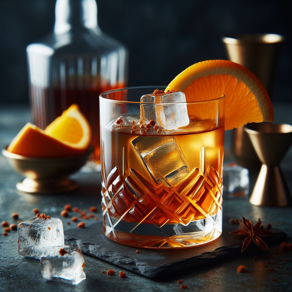- In a mixing glass, combine bourbon, maple syrup, and bitters.