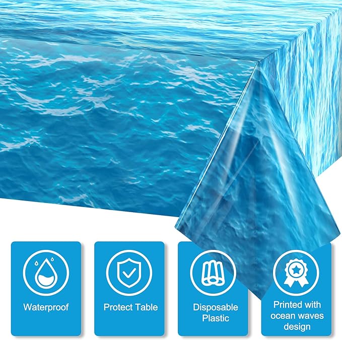 Irenare 2 Pieces Ocean Waves Plastic Tablecloth