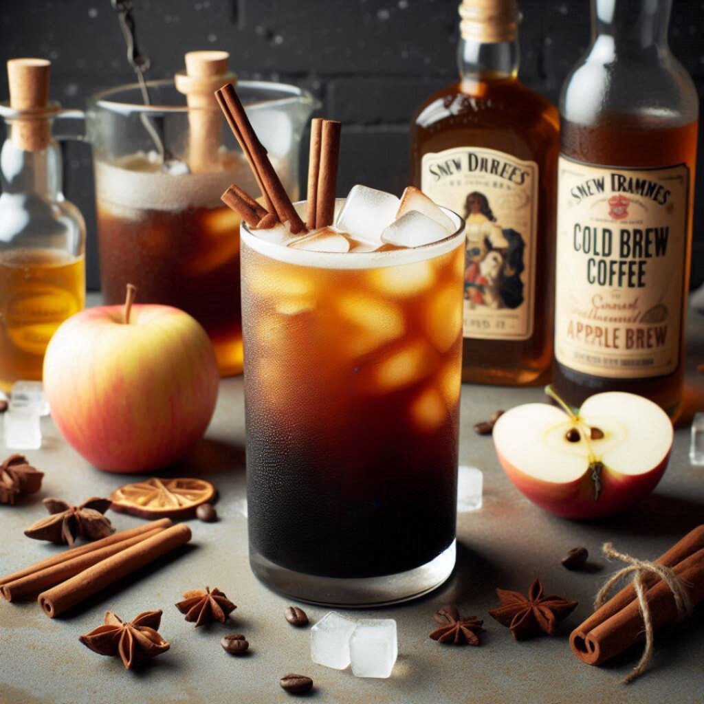- Combine cold brew coffee, apple cider, and cinnamon schnapps.
