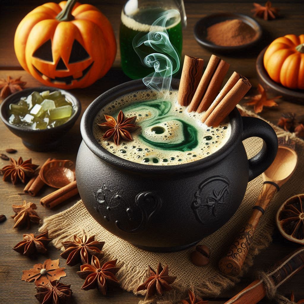 For a wicked twist, add a swirl of green food dye to mimic a bubbling cauldron, and serve it in a cauldron-shaped mug. Top with cinnamon sticks and a star anise for a touch of witchy elegance.