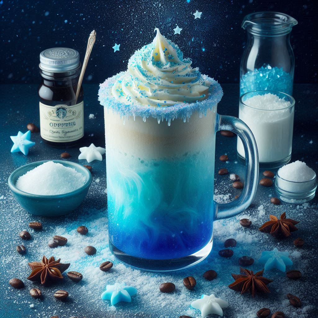- Add a few drops of blue food dye and swirl to create a frosty effect.