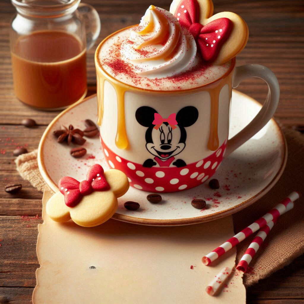 Serve in a polka-dotted mug (just like Minnie’s dress!), and top with a swirl of whipped cream and red edible glitter. Add a bow-shaped sugar cookie on the rim for a playful touch.