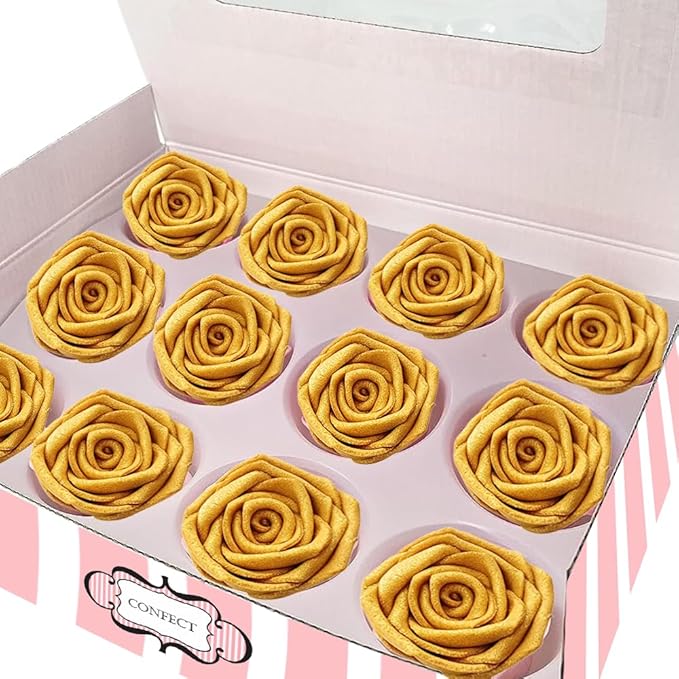 Confect Metallic Edible Gold Roses | Edible Cupcake Toppers | Edible Flower For Cake Decorating | Pack Of 12 Edible Metallic Sugar Flowers for Cake Decorating
