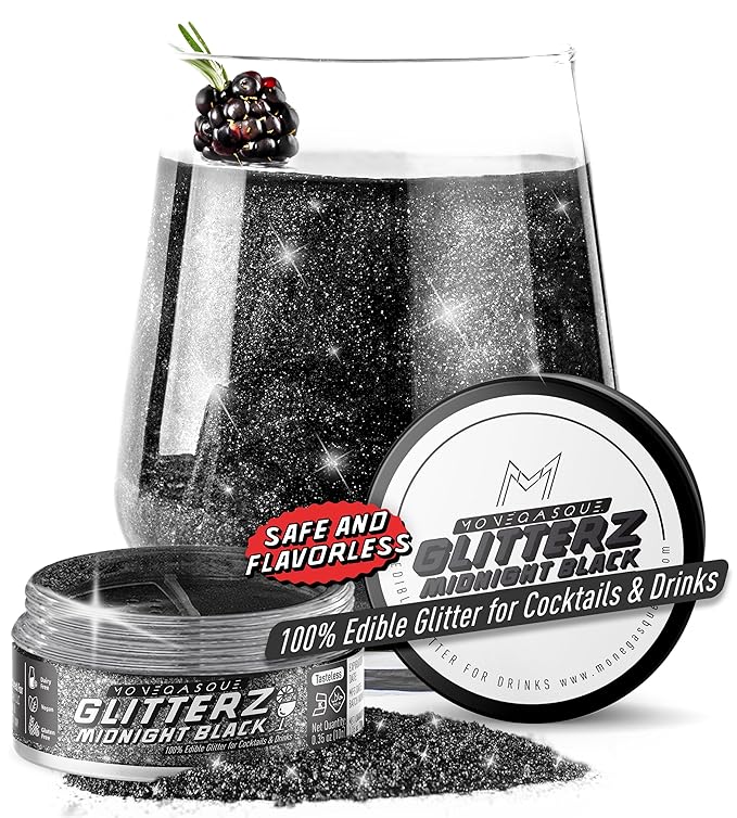 - Dust the rim of the glass with edible black glitter for a moody touch.