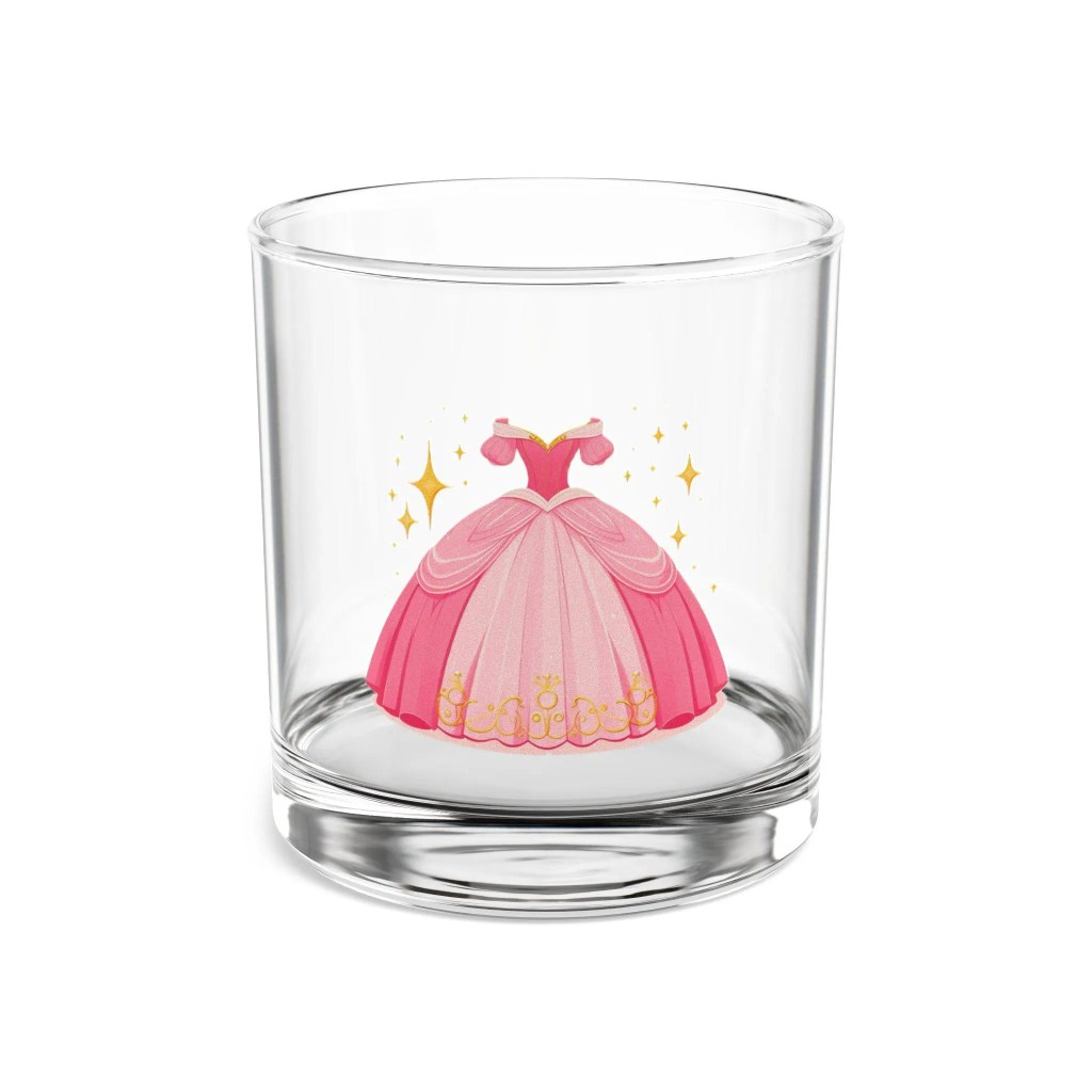 Elegant rocks glass inspired by Sleeping Beauty’s pink ball gown, perfect for bachelorette parties, fairytale wedding decor, and themed parties. It provides a magical and enchanting vibe to your cocktail party and gatherings, making it a great gift idea for birthdays and celebrations.