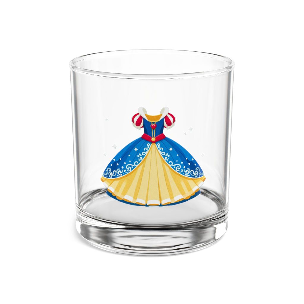 Elegant Snow White Dress inspired cocktail glass perfect for fairytale gifts and bachelorette party favors. This modern and elegant glass with vibrant prints is ideal for those who appreciate a touch of whimsy in their drinkware.